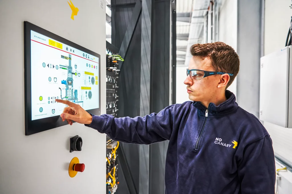 Besonders ist auch die Anlagenkonstruktion selbst: Eine vakuumdichte, explosionsfeste Schredderkammer mit Schleusensystem ist in dieser Form beispiellos und zeugt von unserem Engineering-Know-how. Ebenfalls einzigartig: Wir erzielen durch die Vakuumtechnik einen Nebeneffekt, nämlich dass wir ohne zusätzlichen Sauerstoffsensorik oder Löschmittel das Brandrisiko managen – Sicherheit durch Physik, könnte man sagen, statt durch komplexe Messtechnik. Dieses Prinzip ist simpler und zuverlässiger, was unser System besonders robust macht in schwierigen Umgebungen (z.B. wenn Sensoren ausfallen, bleibt dennoch das Vakuum als Sicherheit bestehen). Zusammengefasst ist die Besonderheit der No Canary Vakuumzerkleinerung ihr innovativer Charakter: Niemand sonst verfügt über diese Kombination an Fähigkeiten, und es ist ein zentraler Bestandteil unseres Alleinstellungsmerkmals im Markt.